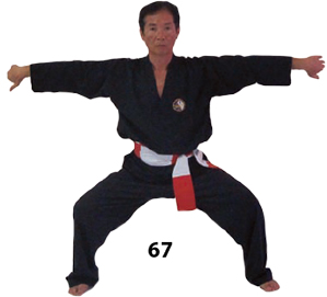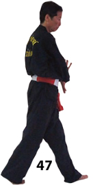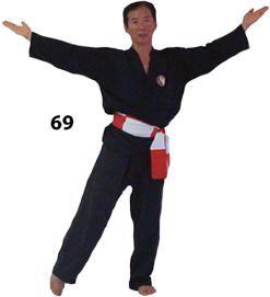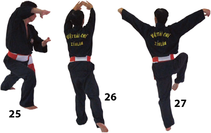 Dostaw prawą nogę do lewej wykonując koło rękoma. Stań w DUONG DUY TAN i potem w DUONG MINH TAN operując lewą nogą.