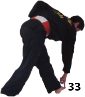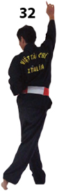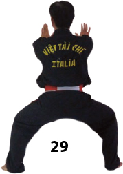 Obracamy się w lewo i kończymy w TUY THIEN TAN. Ramiona i ręce śledzą ruch ciała. Gdy znajdujemy się w pozycji, tył naszej ręki uderza w nasze plecy w punkt V23. Wtedy obracamy się i rozpoczynamy ruch w odwrotnym kierunku.