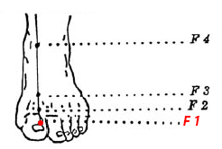 Wykonaj skłon stymulując palcem wskazującym prawej ręki punkt DAI DON, F1.