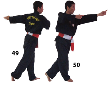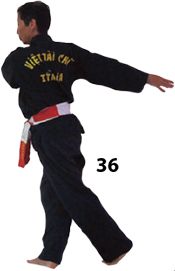 Prawa noga zsuwa się na południe w THIEU AM TAN. Ręce wykonują półkole zgodnie z kierunkiem wskazówek zegara. Ruch kończy się z naszymi ramionami skierowanymi przed siebie. Prawa ręka jest wyciągnięta, lewa jest delikatnie ugięta.