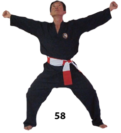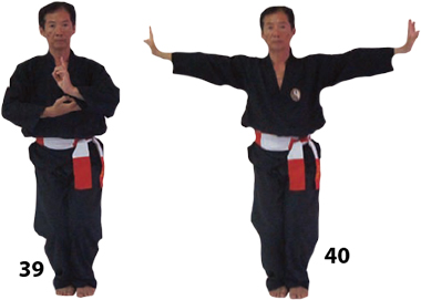 Skrzyżuj ręce przed sobą i zaciśnij obie pięści po skierowaniu dłoni do góry. Wyprowadź cios THAI DUONG TAN stojąc twarzą w kierunku południowo wschodnim.