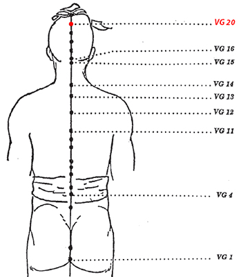 25. Ten ruch połączony jest z punktem BA HOI, który jest na samych czubku głowy. Stymuluje on pamięć i zwiększa jasność. Punkt BA HOI VG20 jest bramą komunikacji z